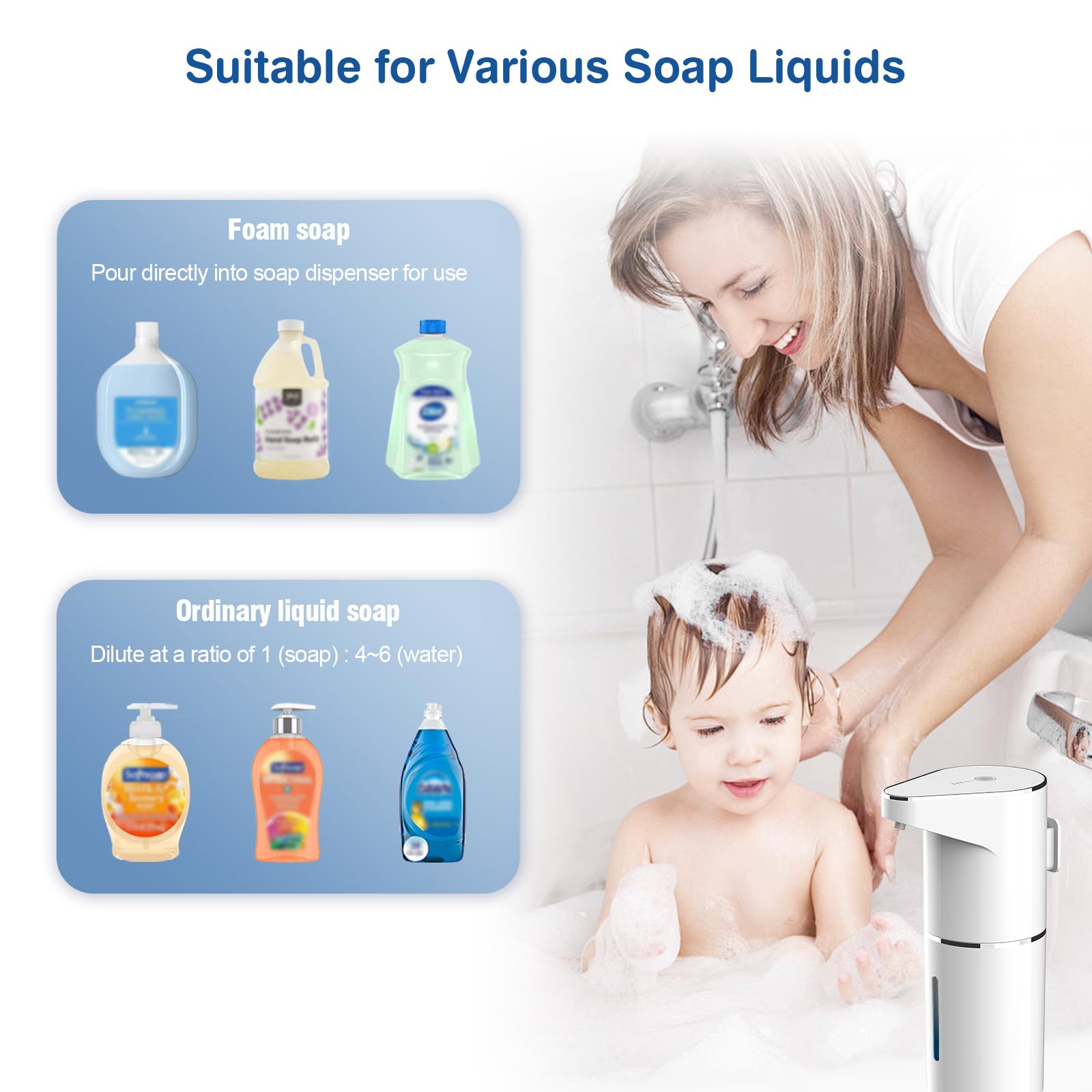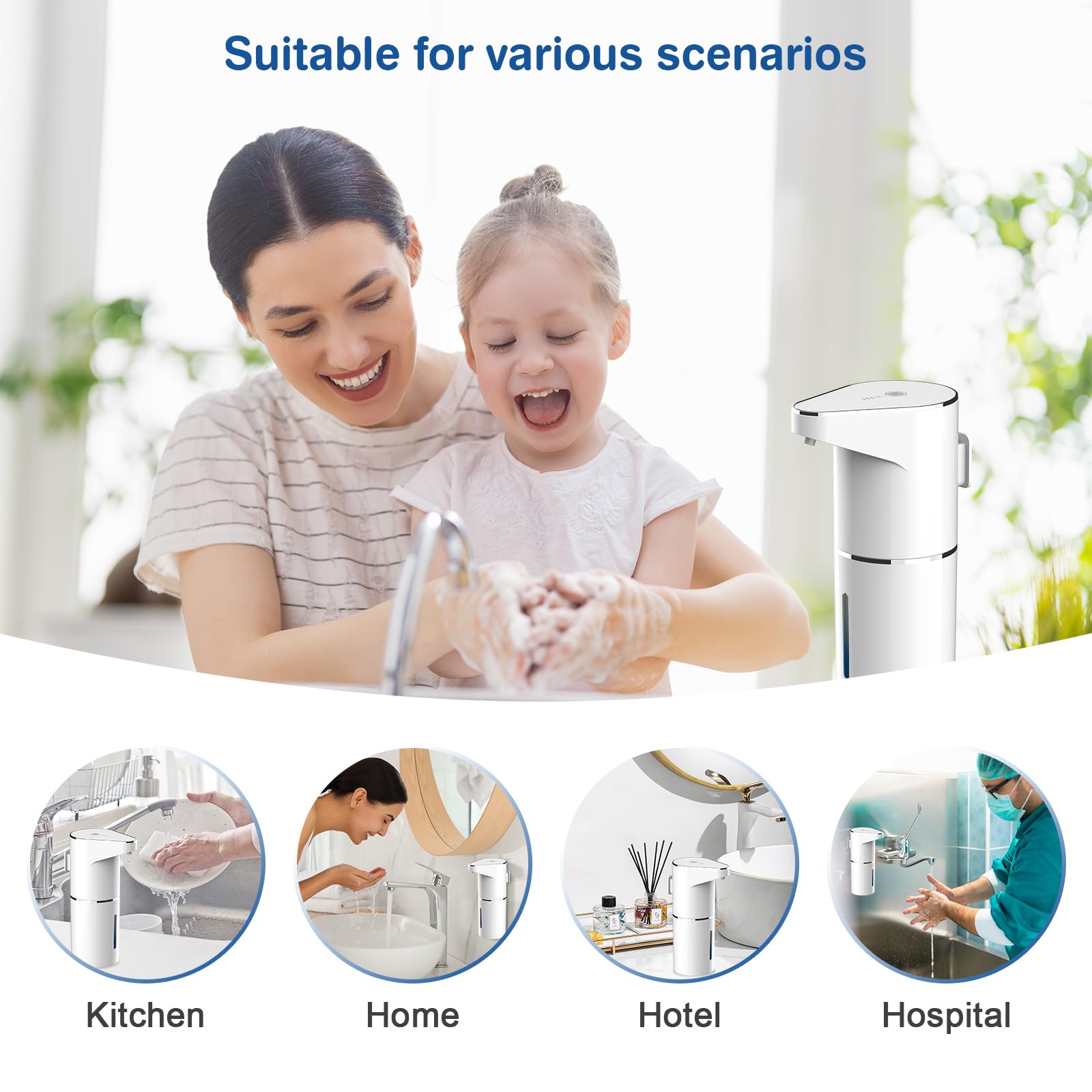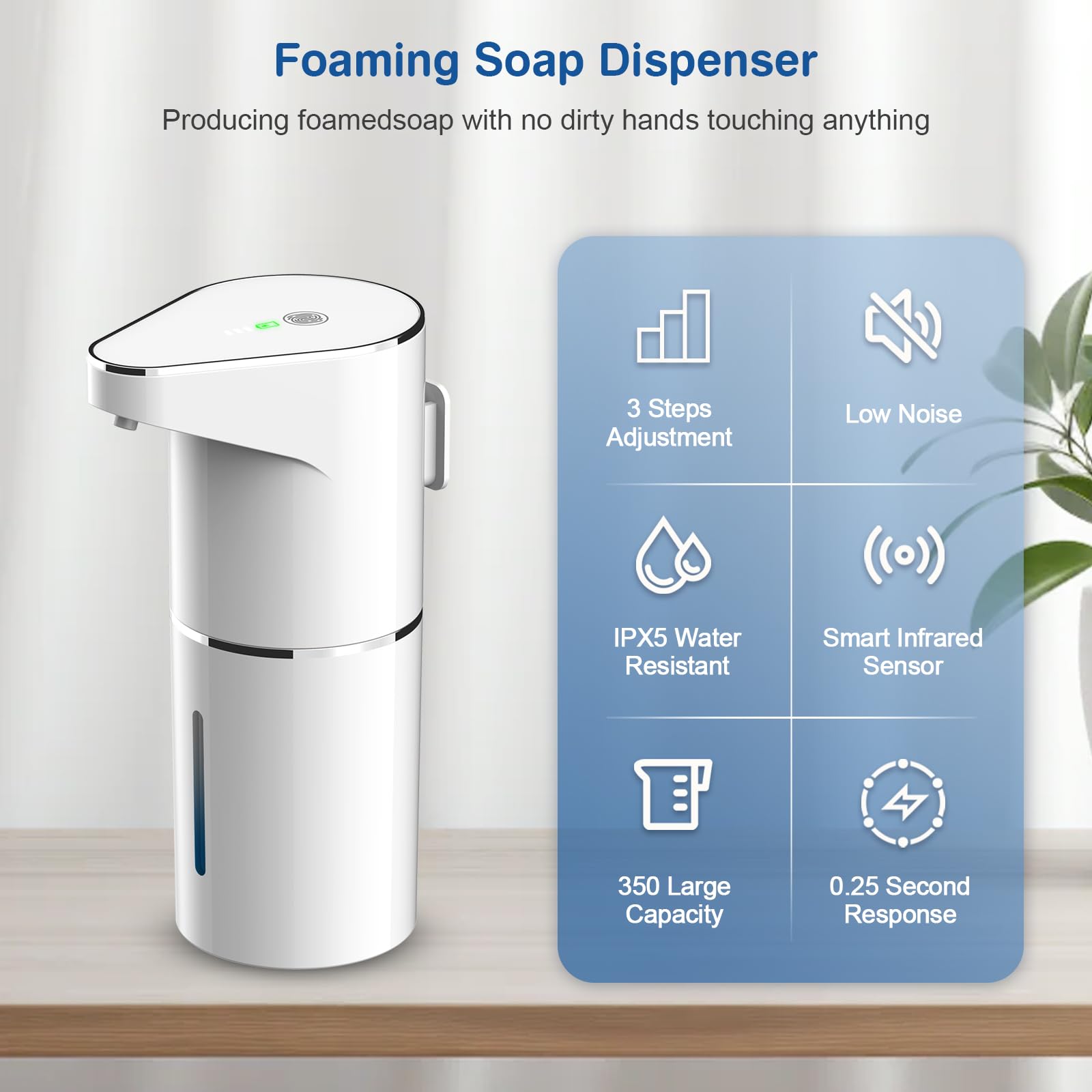 Automatic Soap Dispenser Touchless: Our automatic foaming soap dispenser features an advanced infrared technology, it detects your hand and dispenses the perfect amount of soap without any physical contact, making handwashing easier and more hygienic than ever before