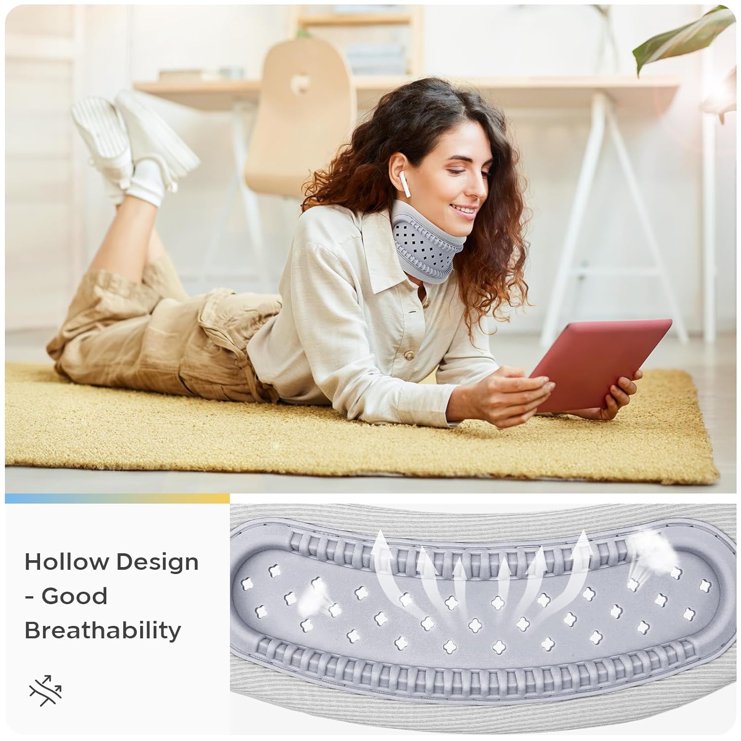Breathable Neck Support Brace - Anti-Slouch Travel & Office Neck Collar for Men & Women, Elderly
