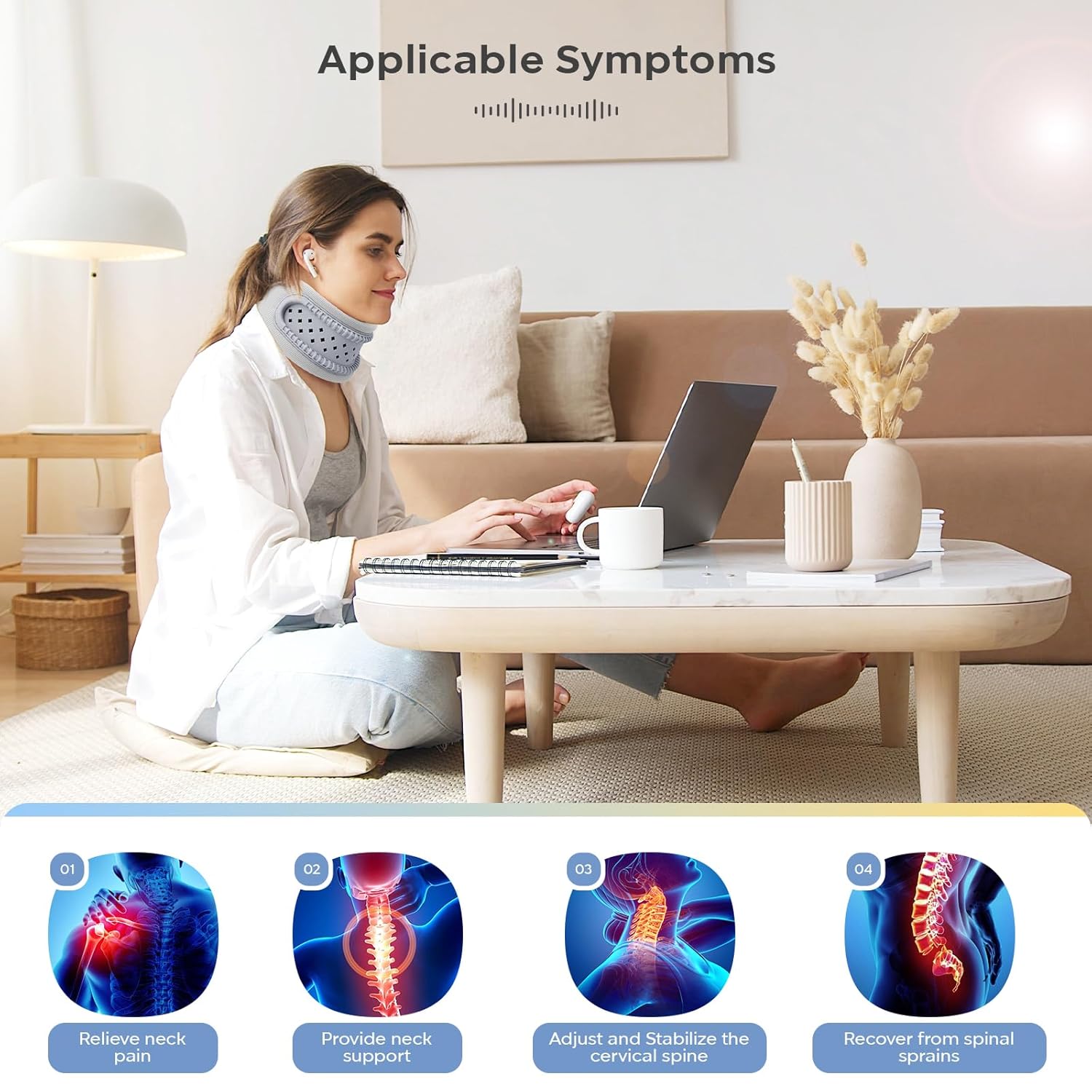 【Enhanced Spinal Support】: With its innovative design, our neck support collar promotes proper spinal alignment and helps alleviate spinal pain caused by poor posture, herniated discs, or muscle strain. It gently cradles your neck, providing the necessary support to relieve tension and pressure.