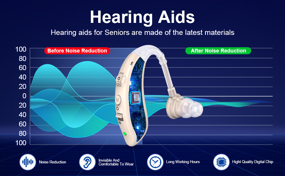 Fine Sound Quality Comfortable Listening:New Upgrade digital chip can achieve double noise reduction, which can filter the surrounding noise while amplifying the environmental sound, making the sound clearer; 3 different frequency modes and 4 levels of volume adjustment, suitable for different hearing ranges; hearing amplifiers not only has better double noise reduction and prevent howling, but also has the function of instantaneous strong sound intelligent ear protection.