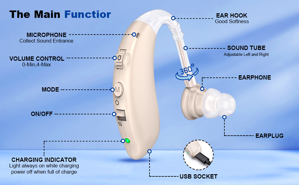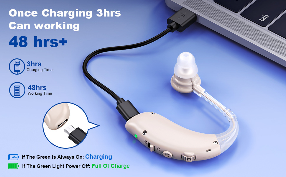 Hearing amplifier charging about 2 - 4 hours can be full and about 48 hours can be used, hearing assistance devices allows you to easily communicate with others, Provide a "boost" for your better life. (Tips: It is USB rechargeable hearing assist without frequent battery replacement)