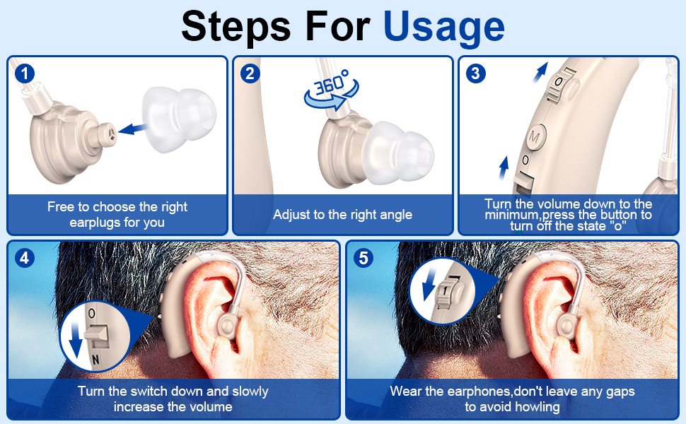 Hearing aids for adults is small and light-weight, it‘s fit to wear and more comfortable to use. Different sizes of medical materials domes suitable for everyone, match cleaning tools to extend service life. Ergonomic Design, not easy to fall off. ; you can wear it at will regardless of the left and right ears, The weight of these hearing assistance devices for seniors is only 5g, and will not cause pain, even if worn for a long time.